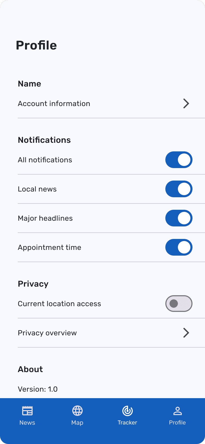 In an effort to create more convenience I tested the ability to store user's vaccination cards, which received (60% n=10) disapproval citing worries around health data being exposed. This part was promptly removed afterwards.