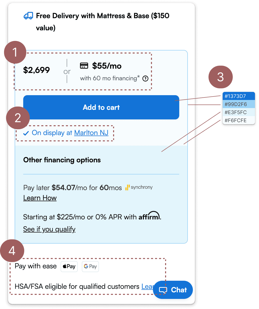 Sleep Number’s PDP price block is a key piece within the purchase journey where customers evaluate cost and affordability. I was tasked with redesigning the price block area to improve clarity and support funnel progression.